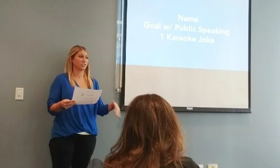 The workshop started with a round of Comedy Karaoke, where participants took turns stating their public speaking goals then delivering one-liners from comedy legends including Steven Wright, Demetri Martin and Mitch Hedberg. After going around the circle and much applause, they asked the participants how they felt on stage.