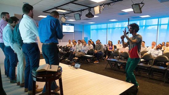 To solve this challenge, Pitch Lab produces custom workshops that break down the comedy techniques the pros use on stage to help your client-facing team build stronger relationships, differentiate from the competition and win more deals.