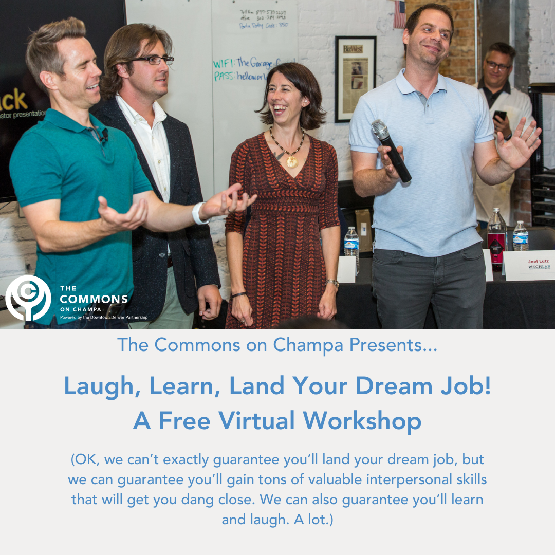 The Commons on Champa invites you to our upcoming virtual workshop: Laugh, Learn, Land Your Dream Job!
