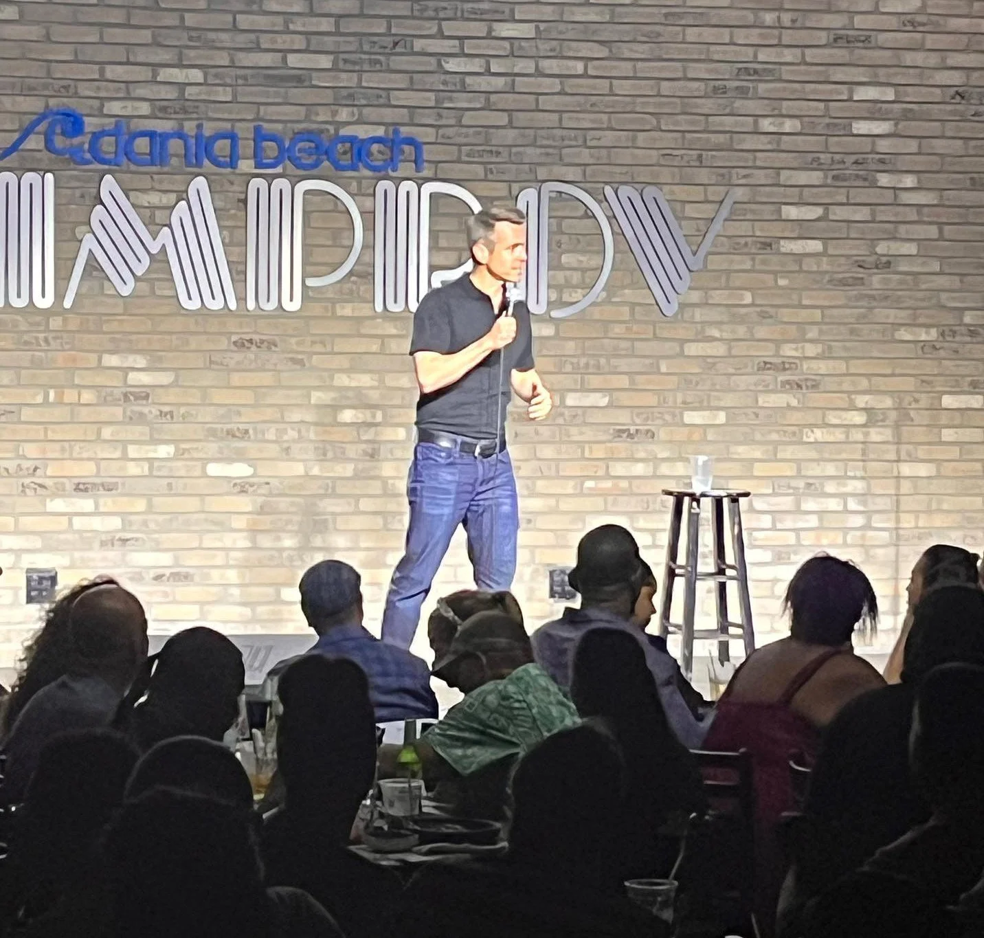 An open mic at a dive bar where bikers are shooting pool and half the crowd is ignoring your set for the Nuggets game? Pure gold for testing new jokes.